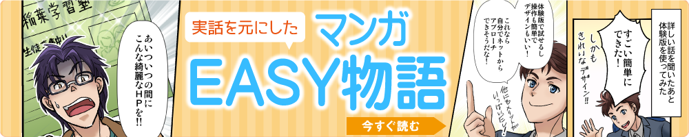 easyは最初から入っているテキストや数字を書きかえたり、画像を入れかえるだけで塾ホームページが簡単に完成するサービスです。